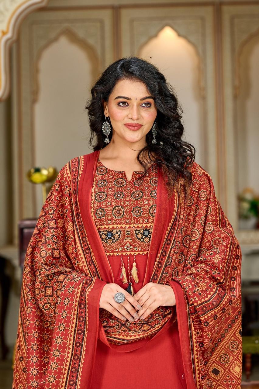 The set includes a beautifully tailored kurta, matching bottoms, and a complementing dupatta – all designed to create a harmonious, refined look. Perfect for festive gatherings, cultural events, or sophisticated daywear, it combines traditional techniques with contemporary styling.